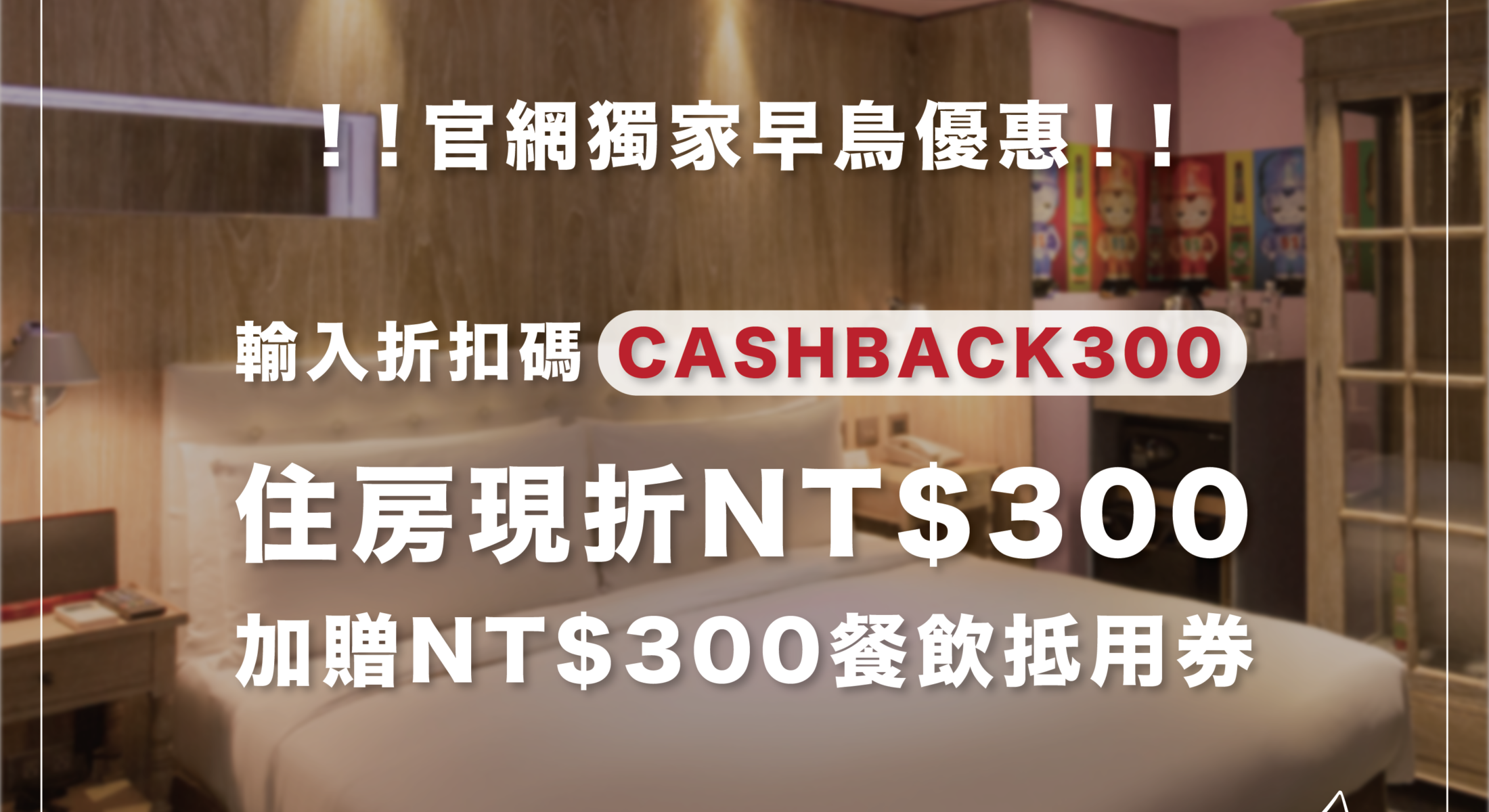 於官網預訂並輸入折扣碼 CASHBACK300,